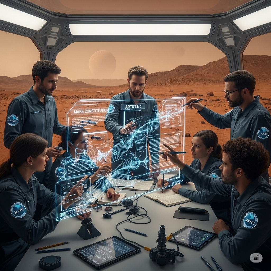 초기 화성 사회는 국가나 이념이 아닌, 과학과 합리성에 기반한 새로운 형태의 공동체가 될 것입니다. 제한된 자원과 극한의 환경 속에서 갈등은 곧 모두의 죽음을 의미하기에, 초기 거버넌스는 군대와 유사한 형태의 강력한 중앙 통제 시스템을 갖출 가능성이 높습니다.